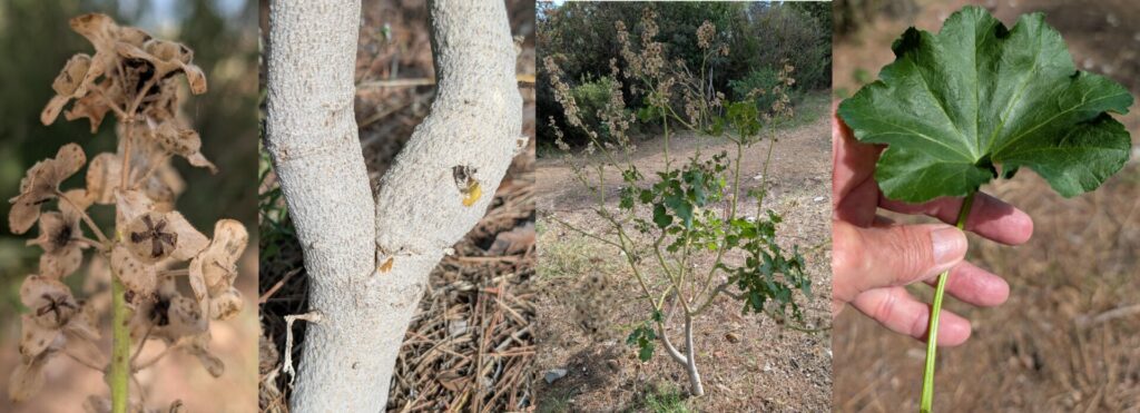 N.B. : On différencie aujourd’hui les Lavatères des Mauves aux proportions de leurs feuilles, le limbe de celles du Lavatère étant nettement plus long que large, ce qui n’est pas le cas chez cette espèce, et explique l’abandon du nom vernaculaire de Lavatère arborescente.