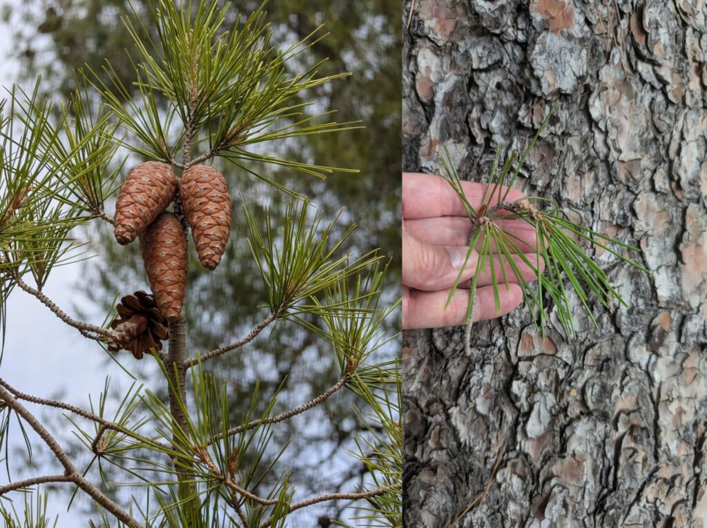 Il s’en différencie, par son tronc tortueux et ses aiguilles fines, légèrement argentées, qui lui valent le surnom de “Pin blanc”.