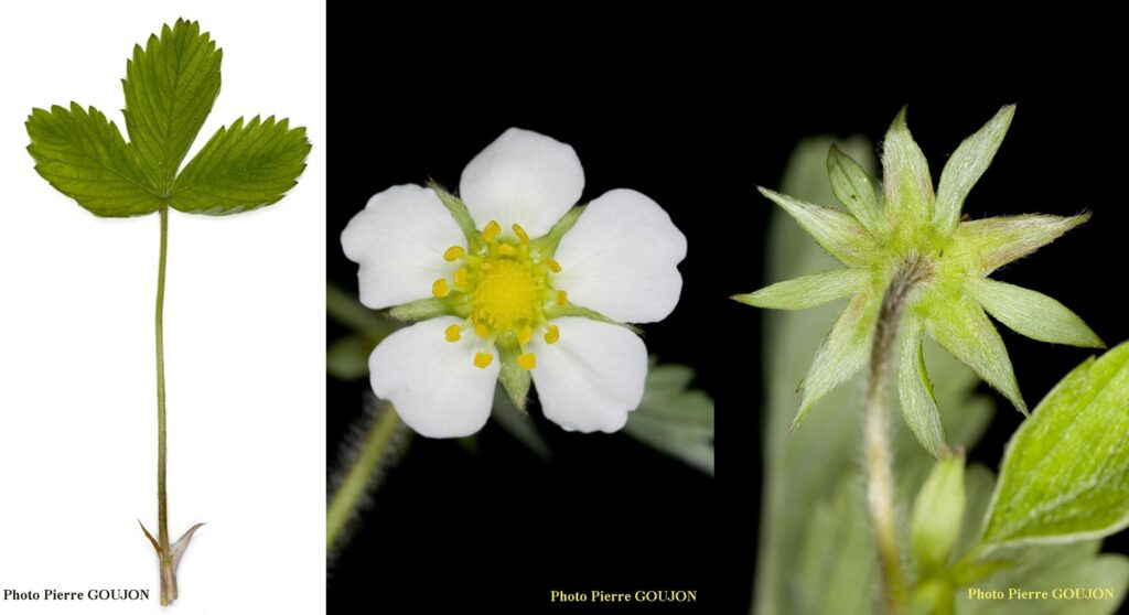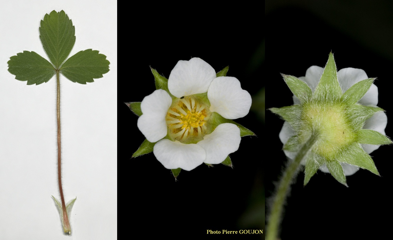 Il s’agit de Potentilla sterilis, la Potentille faux fraisier qui ressemble beaucoup au Fraisier des bois (Fragaria vesca). Elle s’en différencie par le nombre de dents sur les folioles: moins de 15 pour la potentille, plus de 15 pour le fraisier. En outre, la dent terminale des folioles est en général beaucoup plus courte que ses deux voisines.