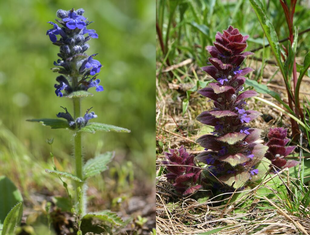 N.B. Elle peut être confondue avec la Bugle de Genève qui préfère les sols plus secs et moins riches et qui est pubescente sur chacune de ses quatre faces et ne présente pas de stolons rampants. Comparaison.