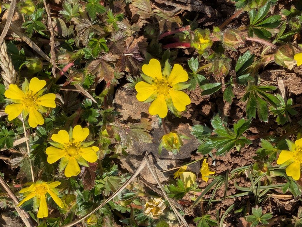 Potentille faux fraisier vue le 16 mars 2025: Prospection sur la teppe et le bois de Fée. (Plante 10)