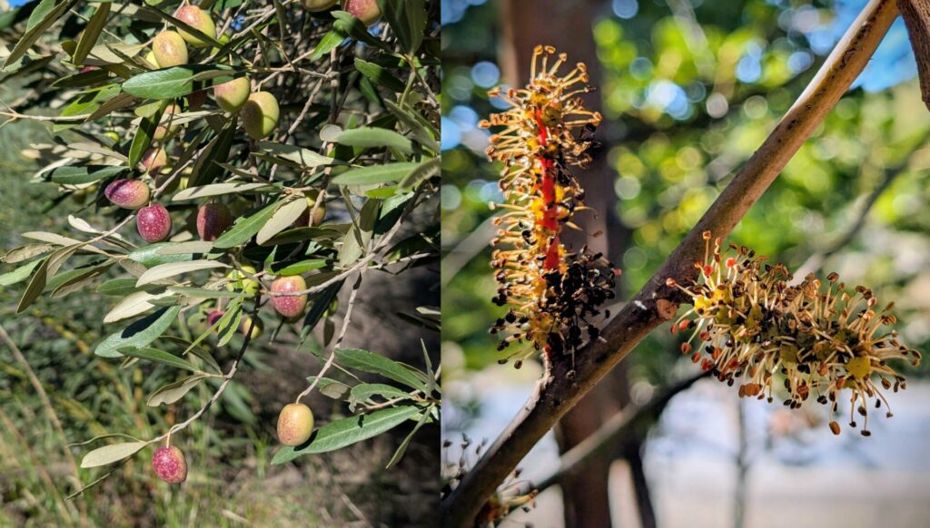 8 : Olivier en fruits et caroubier en fleurs :