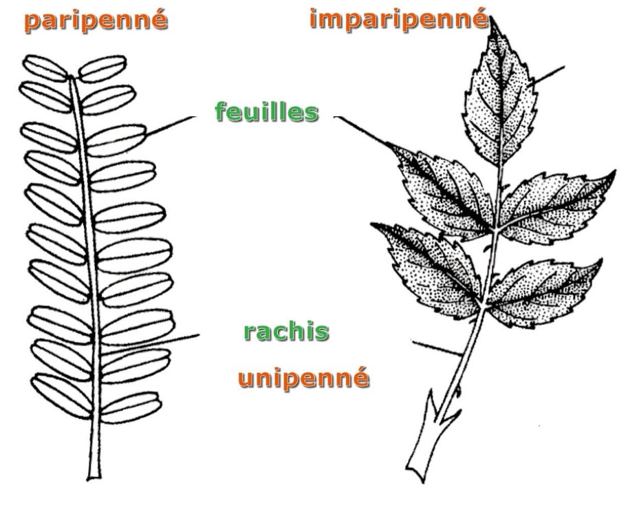 *Feuille paripennée (pennée sans foliole terminale) et imparipennée (pennée avec foliole terminale) par aquaportail :