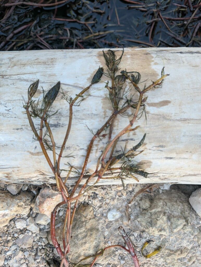 8 : Une plante abondante (très envahissante) à la surface du lac : Myriophyllum spicatum.