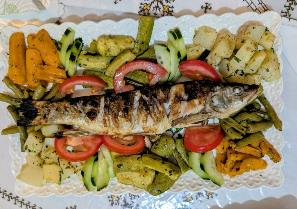 Notre repas au coin du feu sera une truite locale accompagnée d’une belle poëllée de légumes locaux !