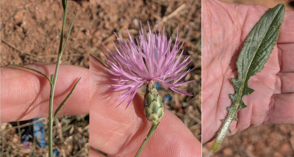 Flore de Franche-Comté : C’est une plante peu commune qui croît dans les garrigues rocailleuses de la région méditerranéenne. La tige, généralement ramifiée, porte des feuilles très étroites et dentées. Celles de la base sont plus larges et découpées. L’involucre est fortement rétréci au sommet. Les bractées sont ovales et se terminent par un petite pointe (image 2) souvent rebroussée. Autres centaurées.